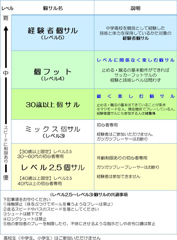個人参加(個サル)レベル早見表